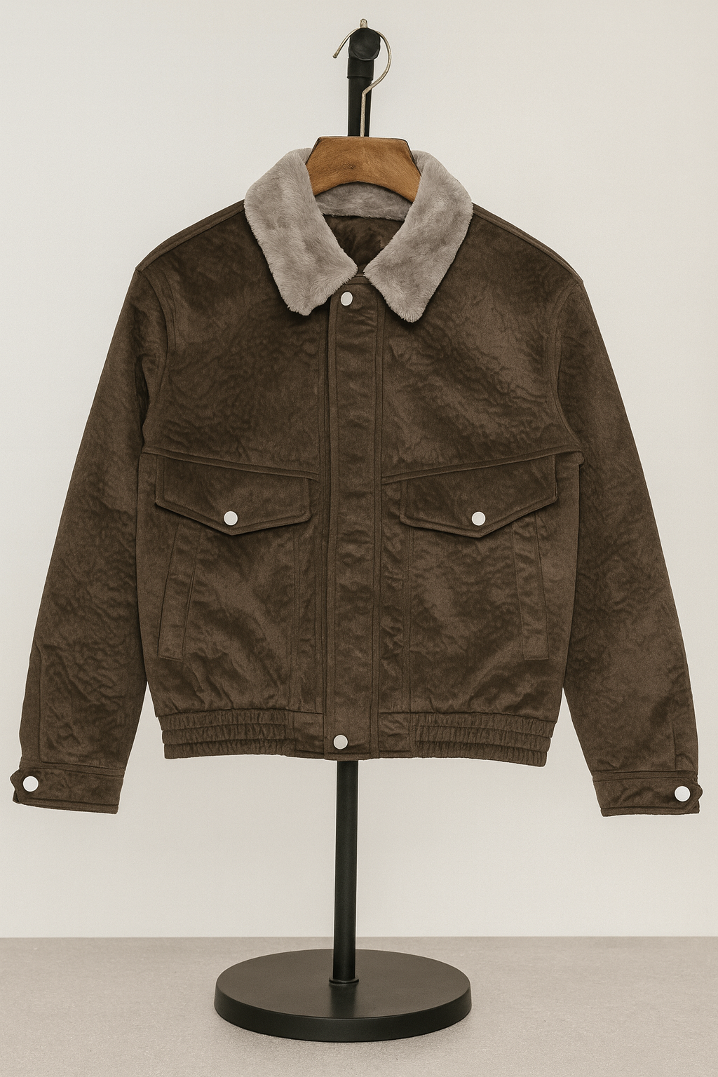A rugged classic reimagined for colder days, the Highland Winter Trucker blends timeless design with cozy functionality. Made from a soft, textured brown fabric and finished with a warm grey sherpa collar, it delivers both comfort and style. With dual chest flap pockets, snap-button closures, and an elasticated hem, it’s built for crisp air and layered looks—your go-to for effortless winter wear.
