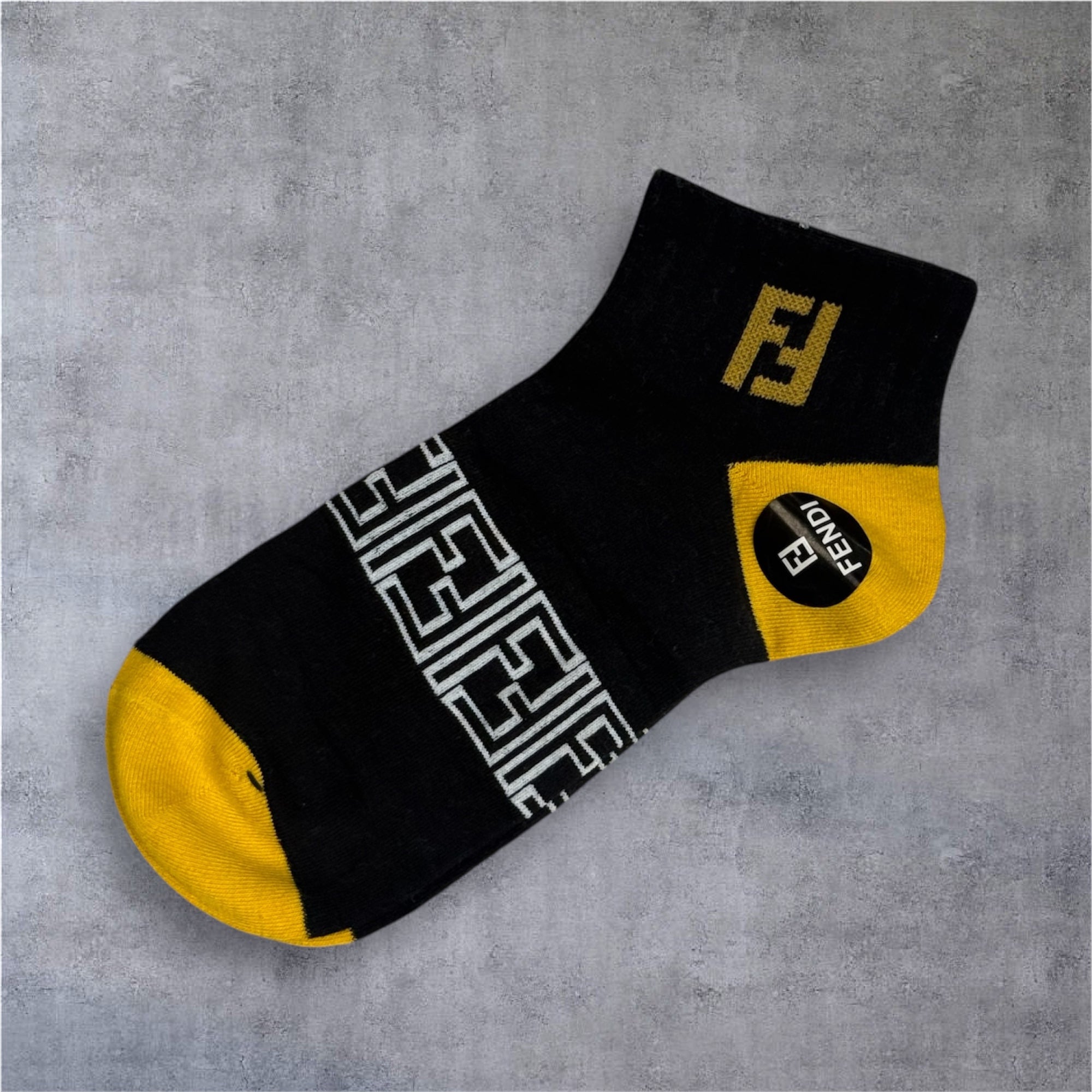Step up your style game with this premium set of Fendi designer socks. Featuring iconic Fendi branding and luxurious craftsmanship, this box includes 5 unique pairs in stylish colorways – black, white, yellow, and more. Perfect for gifting or elevating your everyday look.