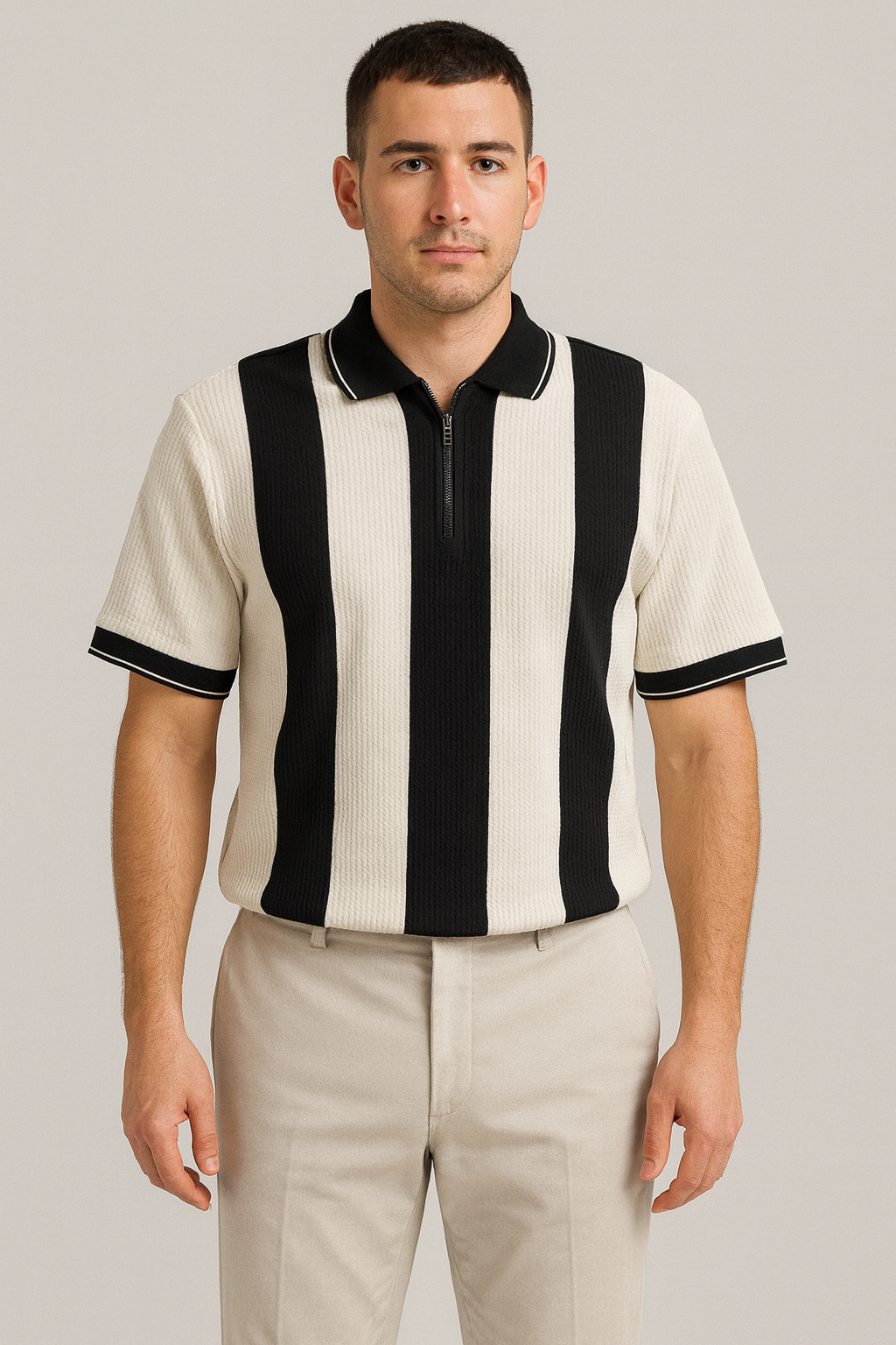 Elevate your smart-casual look with our Old Money Shirts. Featuring bold vertical stripes in burgundy and cream, this shirt blends vintage style with a modern fit. The textured knit fabric adds a touch of sophistication, while the half-zip collar gives it a contemporary twist.